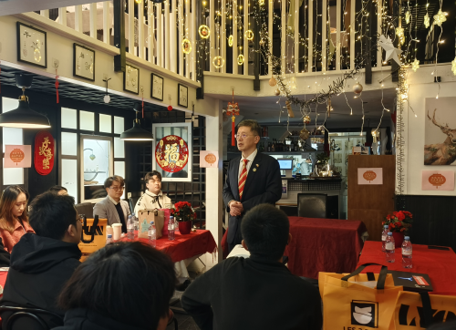 2026年1月23日,驻里昂总领事于江出席格勒诺布尔学联新春座谈会,近30名中国留学生参加活动。